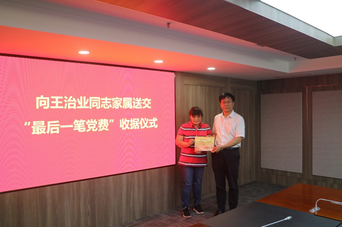 2023年5月29日上午,交流中心黨委舉行莊重而簡樸的送交儀式,中心黨委書記、主任朱小良同志代表黨組織鄭重地將中央組織部開具的6萬元大額黨費收據,送交到王治業的女兒王杉杉同志手中。商務部直屬機關黨委、部主題教育第2巡回指導組有關同志出席儀式,交流中心領導班子成員、各黨支部書記和青年代表共同見證了這一重要時刻。朱小良同志帶領大家追思了王治業同志的人生經歷及其志存遠方、不負韶華的生平往事,深情回顧了這位有著70年黨齡的老黨員畢生愛黨敬黨、忠誠于黨、獻身中心改革發展和商務事業的光輝一生和感人事跡,向王治業同志及其家屬表示崇高的敬意,并就向王治業同志學習提出具體要求。王杉杉同志代表家人感謝黨組織對她父親的充分肯定,作為子女將會牢記父親的教誨,傳承父親的優良作風和良好家風,繼續用心用情做好自身工作。
